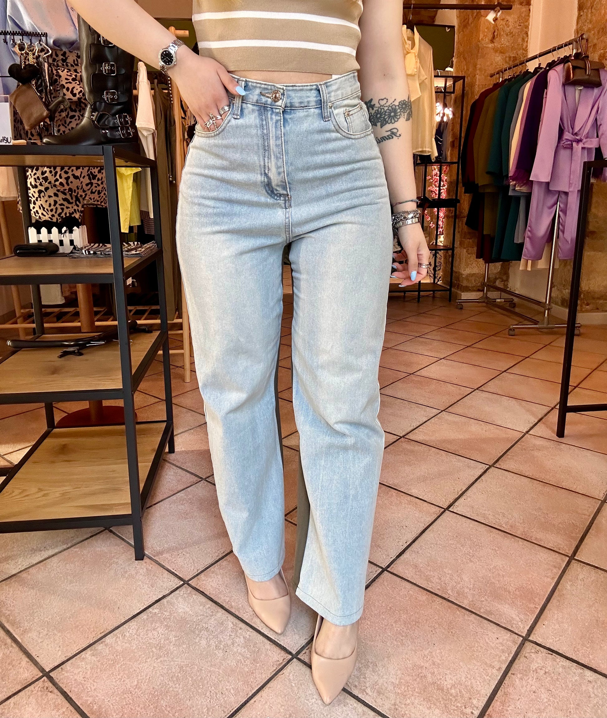 Jeans con inserto in tuta