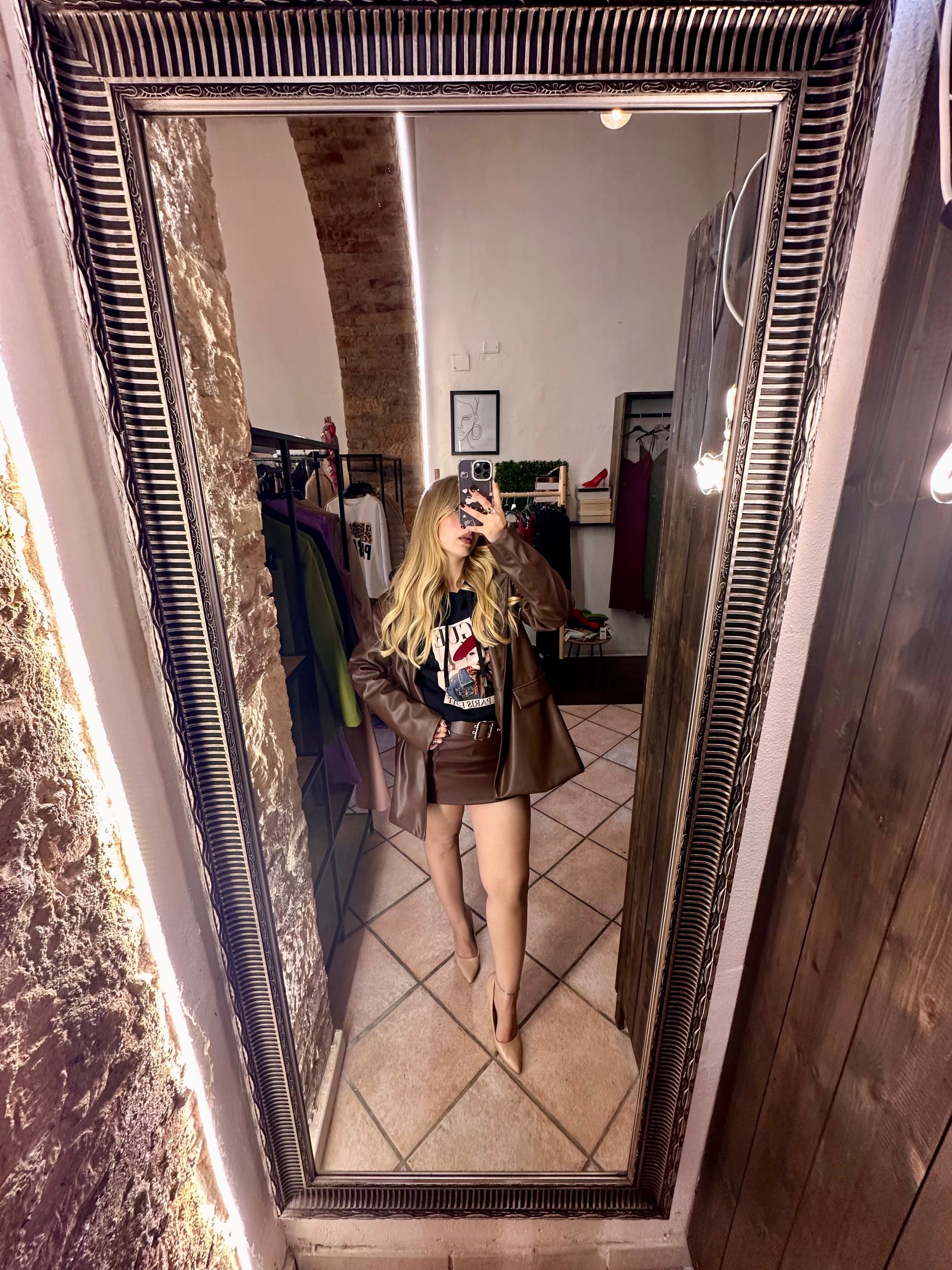 Gonna pantaloncino in eco pelle , con cintura in dotazione